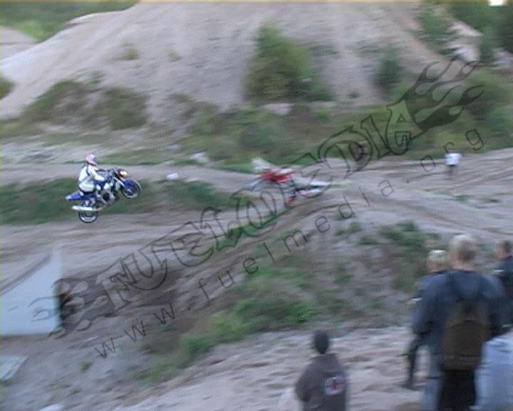 Yeah... he jumped 2 times before this jump. This was the longest one so he flew by the landig a bit. He bendt the footpegs a little and the rearwheel broke the undertray. But he didnīt crasch.