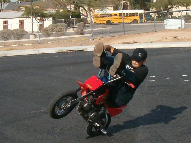 ive gotten a lot better at circles. after a couple circles in can get them down to 1 parking space. i can drag my stunt peg in 1st gear. i get them so tight that its spinning around the back wheel at a steady throttle.