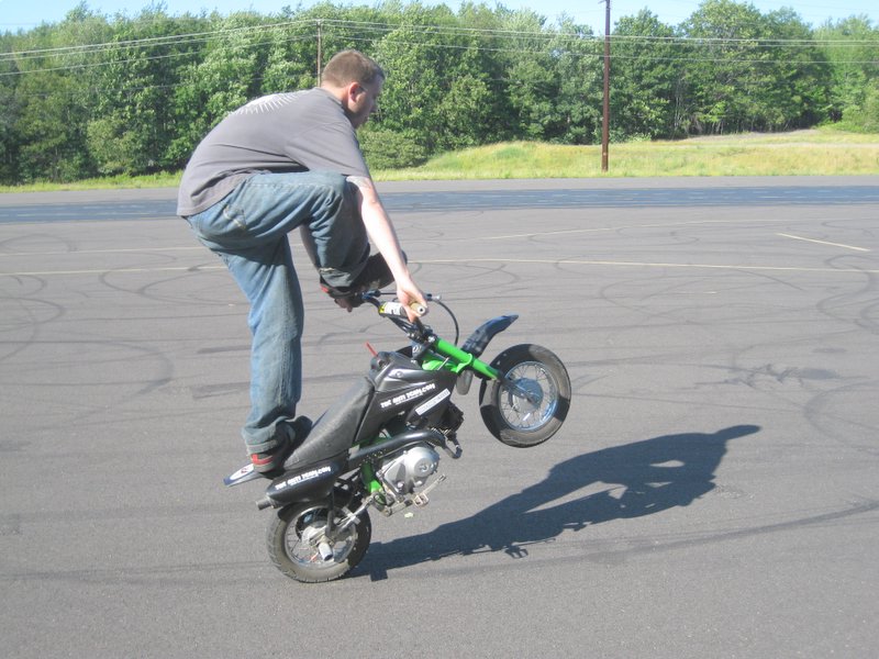 They think that since they can wheelie a 50, then they should be able to wheelie the big bike and it be about the same. Except they forgot the part where u had to slip the clutch (with ur hand) and then instantly find the rear HB with that same hand afterwards, LoL..........Having BOTH of those on a 50 will make your life alot better when it comes to the big bike for sure....=-)