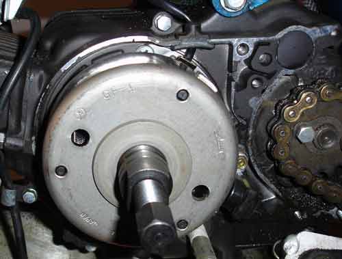 You can kind of see the flywheel sensor in the pic on the lower right .