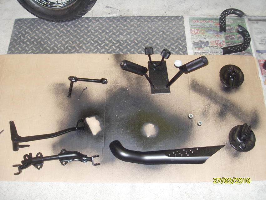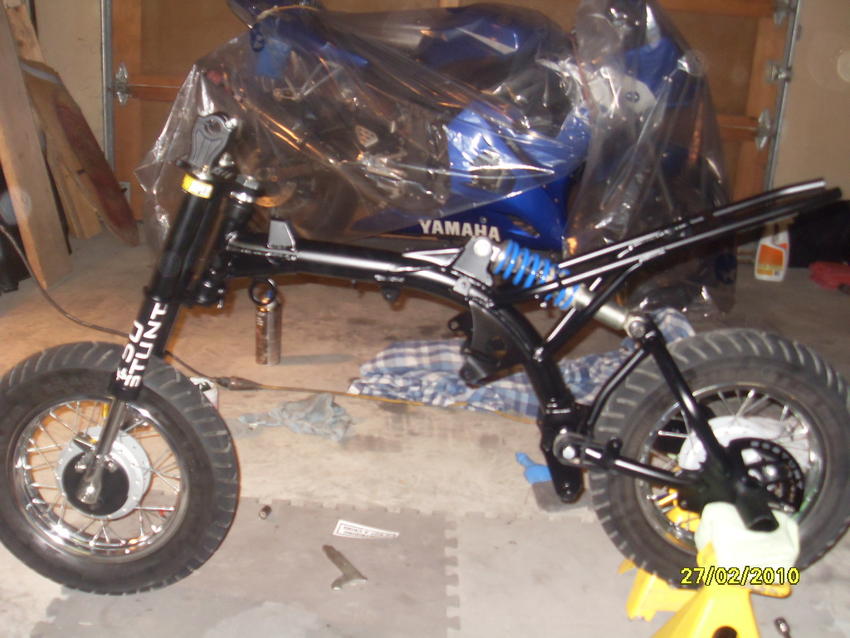 Put together a funny combo of plastics and made a seat cover out of some dickies heavy duty work pants... looks pretty funny. Adjusted my brakes and suspension and took apart my motor and put in new gaskets.