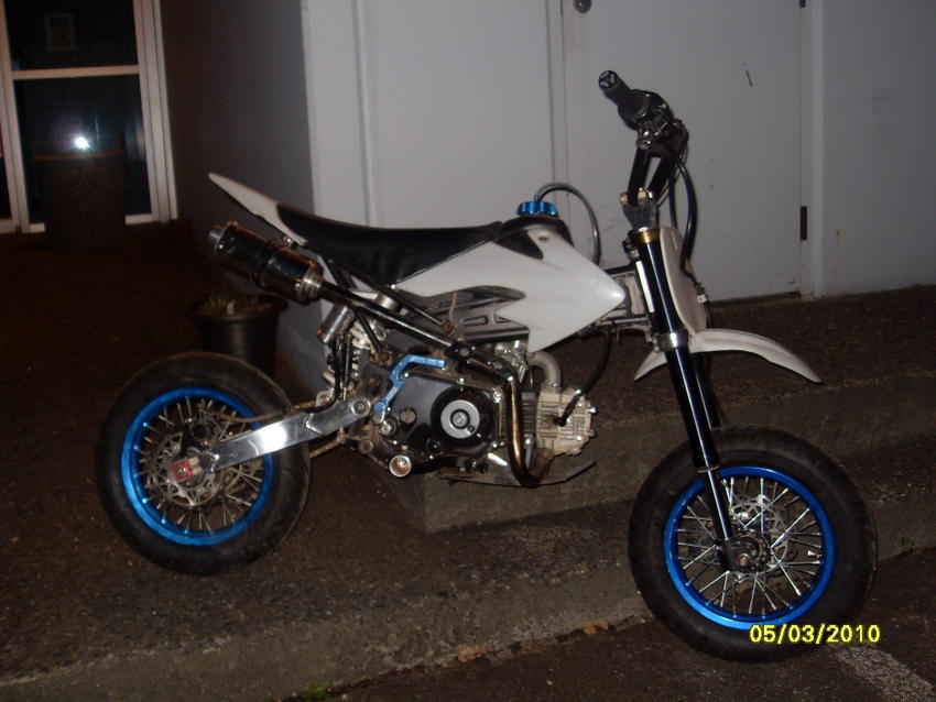 Ordered front and rear brake arms, hd springs and bushings, stiffer rear spring, kitaco pads, brake *****, black plastics, new graphics and some renthal medium grips!! Next to paint or powder coat the frame, swingarm and forks.