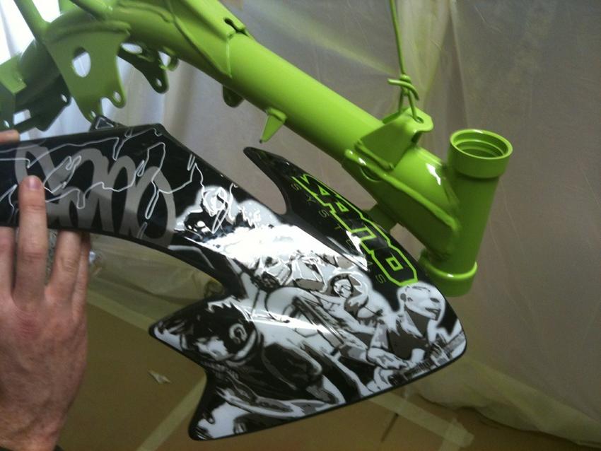 I actually bought the same blue as the shock but the graphics didnt have the blue they were supposed to so i had to buy the green...which is what i wanted originally!! So im gunna do my other frame blue.