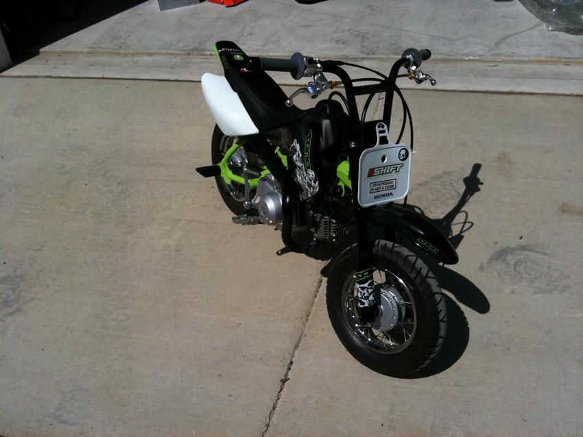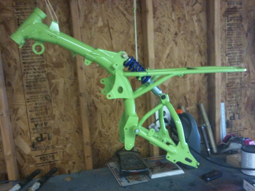 So here goes another build thread. I have had a bunch of stuff done for a while but i tore it all down for paint so i'll post pics as it goes back together..first few pics are of the new paint(still drying) and one with the new plastics/graphics. Not the greatest quality cause they were taken with the iphone! I shot it with Dupont lime green, not **** can paint so it should hold up a little better.