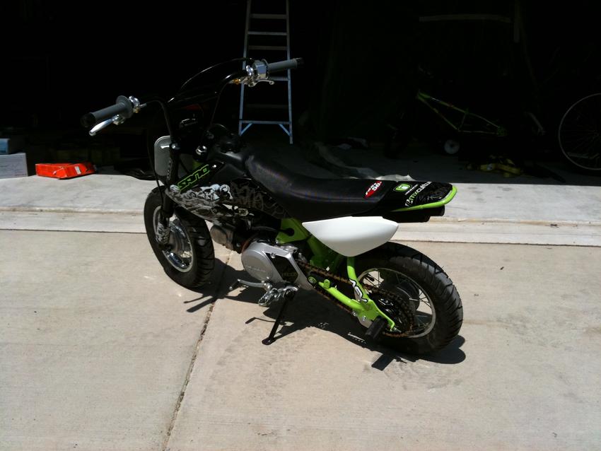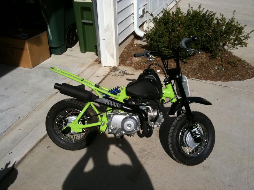 So here is the close to final product, i stilll have the foot brake and the hand brake cable bracket to paint black. Not sure if im gunna do the motor yet or not then eventually will come black rims and painted hubs.