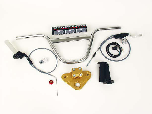 i kinda mixed matched mine... i went with the joker machine tall boy fwd. clamps and then actual S&M BMX bars.. their the same as what i run on my bike, and i like the bend... then jus used a motion pro throttle and front brake lever and two bros or joker cables and applied carb top