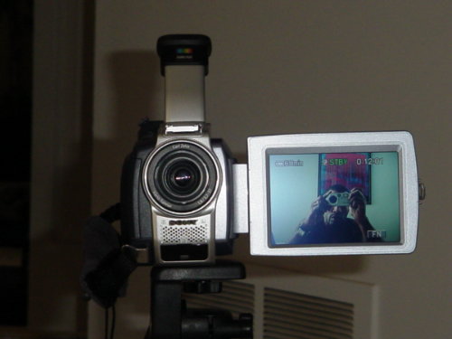 played out, notice the 3.5 inch screen , and me with my Sony p51 shooting the pic... nice shot