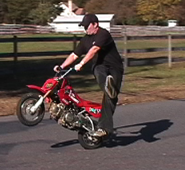 in 2 hours of riding i went from barely wheelying 10-12 feet to being able to slow it down and turn HUGE circles.. i was ridin up driveways and stuff with it like this..