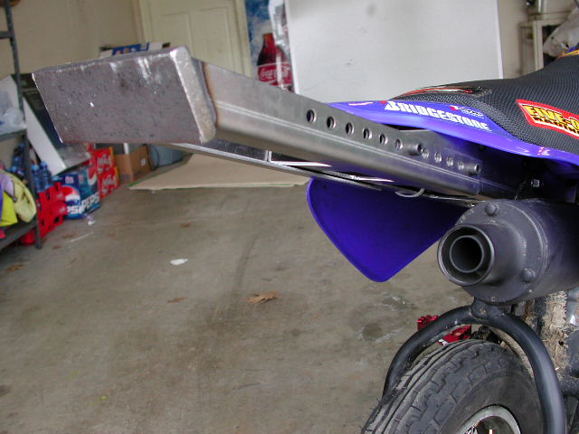 yeah i like that whole adjustibility bit, and the fact that you could easily remove the rear section easily, i wonder if he could do one powdercoated black. i also like the fact that the FI bar is powdercoated and extends down to the frame for support though. got any pics of that bar mounted up w/out plastics on? and what kinda endcap is that? looks sweet man!