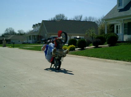 i can actually roll a high-chair stoppie further than i can roll some reg's.....100ft. max so far stock, except bars, i feel the more weight over the front tire the better the leverare you have to roll it .