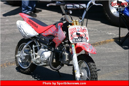 A bunch of guys I know all have pocketbikes. They don't really stunt em but do parking lot races. I bring the mini-motard fiddy and school all but a couple of em that are fairly hopped up.