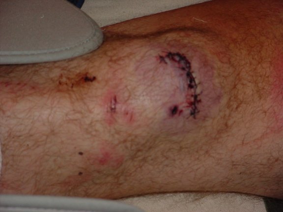 I have a couple really crappy pics at www.mobog.com/freakaccident. Nothing special to see. It was too dark. Just some blood.