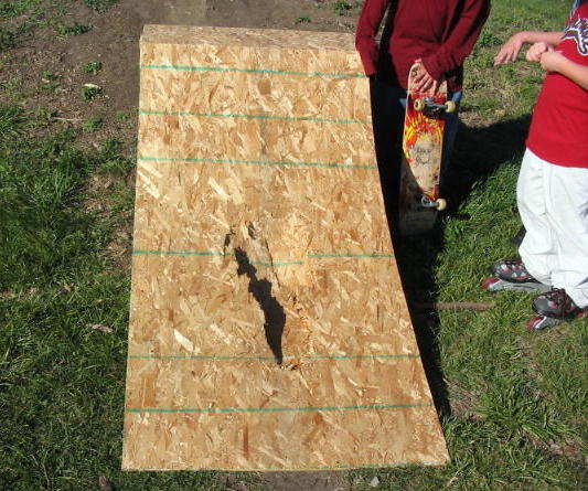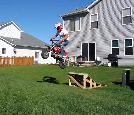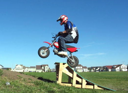 After nolimit23 hit it, I did. The front tire tore a huge *** hole in the bottom of the ramp when I launched, the bike did a nosedive, and I tore up my knee pretty good when I landed wrong on it. I also bruised the crap out of the ball of my foot.