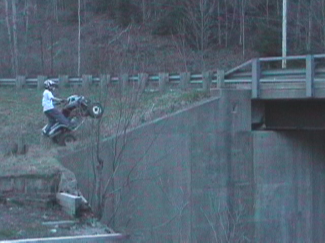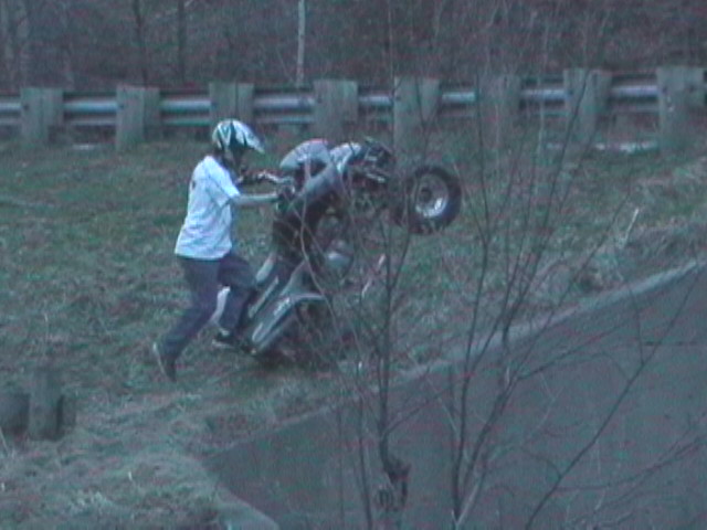 I also was playing on the land next to the bridge too....that was actually a little scarier....My tires were completely flat (didn't take the time to blow them up), and one spun and the other caught traction and it kinda turned me to the side....thought i was heading off the edge....heheeh