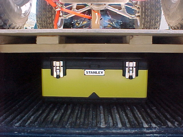 looks good. Wouldn't you want to sink it down to just above the wheel wells so that the quad sits in the bed, not ontop of it. Regardless. Thats some McGyver **** right thurr!