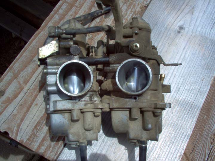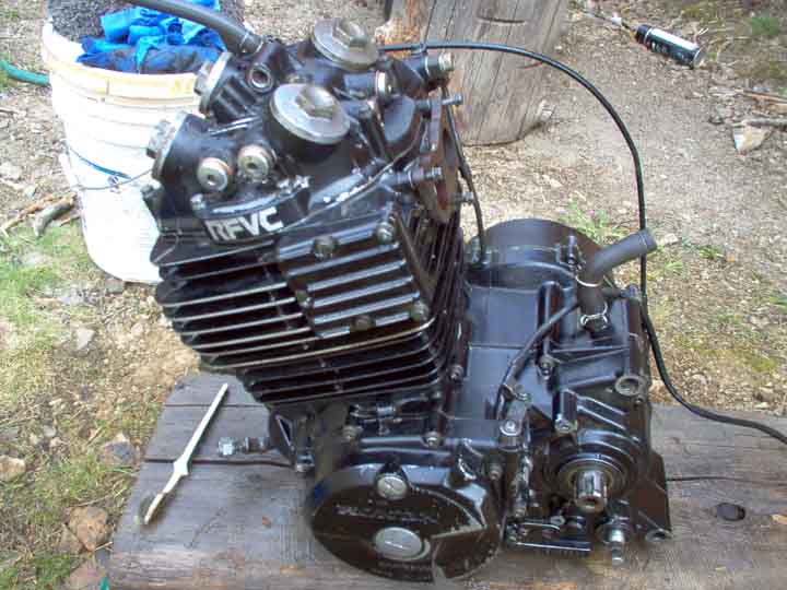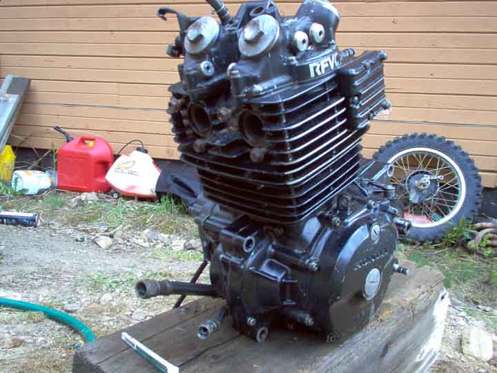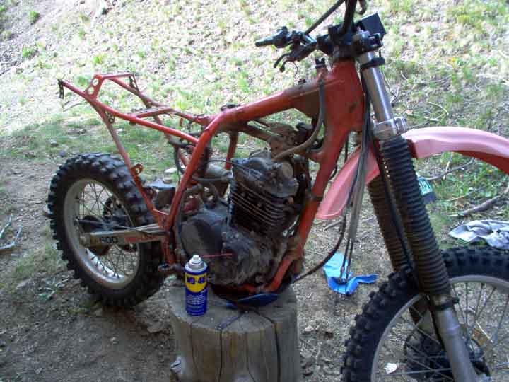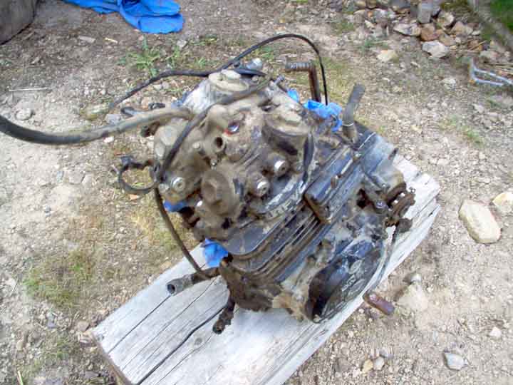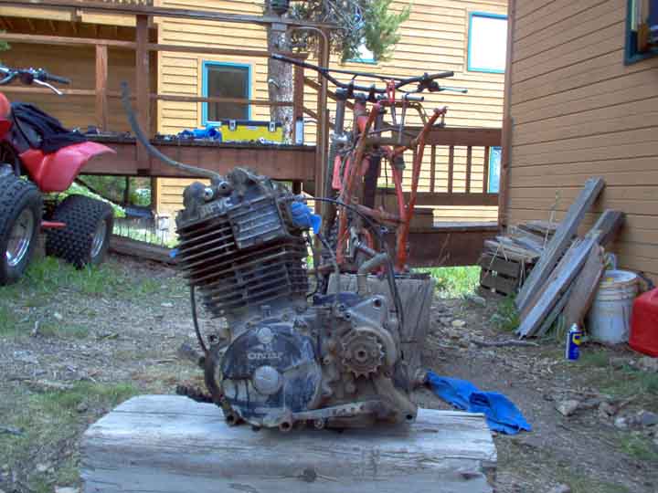 The overall condition is pretty bad, but it runs and runs well! I got it home, pulled the carbs and cleaned them. I also drained the gas and changed the plug. After doing that... in the amount of kicks it would take the gas to get through the carbs to the plug... it fired. Ran perfect!! Never spuddered.... never coughed or even hic-uped!! I took it for a spin down the road and everything but the speedo worked! The brakes are strong, the motor is strong... hell... it still has the original handlebars! Now it's just a matter of time to tear it apart and build it into an "old school" supermotorard!
