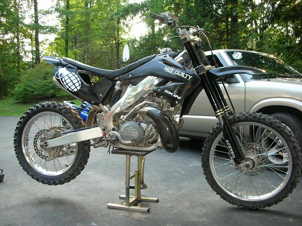 it's in pretty good shape, there is a dent in the exaust pipe but it's minor, the bike is mostly stock, new front brake and clutch lever, tag t2 bars, and i'm putting on new renthal sprockets and chain set soon, excel rims, michelin mh3 starcross tires which are almost new, putting in airbox vents soon. 2003 model which i got used, it has only been over once in the time that i have had it