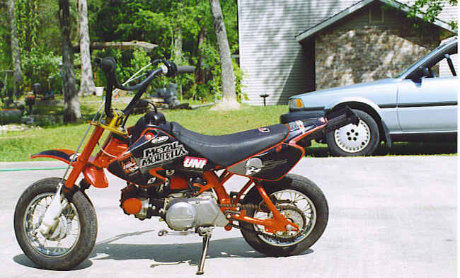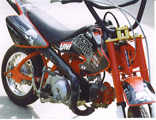 the fiddy has sik fiddys 75cc kit, sik fiddys clutch plates, hd springs, hd fork springs, hd rear shock spring, bbr bar kit, painted frame, brand new tires, sik fiddys cam some more stuff i cant remember