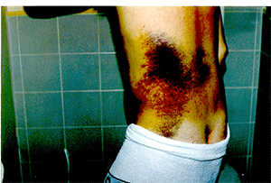 I recieved this bruise from a toyota corolla i was in hospital for 3 months i lost my left kidney,spleen and callapsed my lungs,broke my back,scapula,sternium,pelvis,damaged my liver and ruptured my left ball..