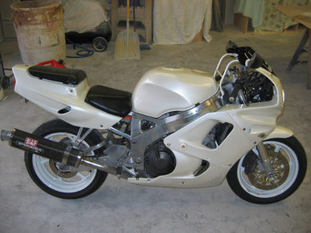 I got tired of it and just took all the parts to the painter. He looked at it and saw what had to be done as far as primer and repair for the bare metal tank and middle fairings and charged me for it. I wasn't tripping. 3 or 4 days and it will be ready. I've been without a bike for a month and i can't wait. It's going to be totally re-done. Wicked!! Bling-bling!!