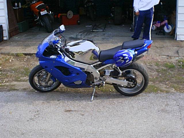 Here r some pics of the bike i was talking about about 4 months ago. I got it finished and rode it about a month and a half then i bent my rear sprocket. I got a total of about $3400 in it including buying it, it's a 99 zx-9r.