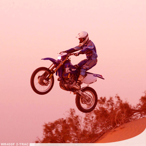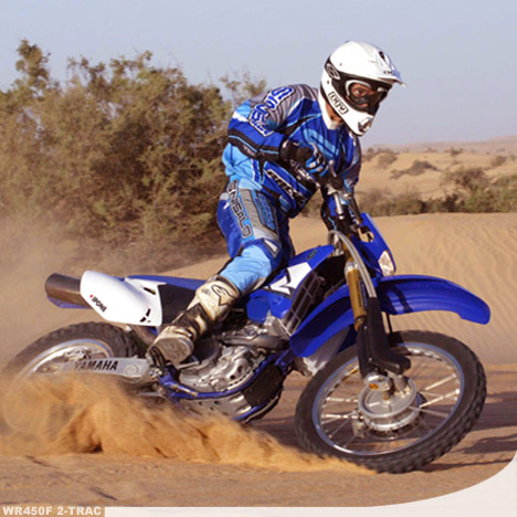 2-TRAC – HOW DOES IT FEEL? The Yamaha WR450F 2-Trac rally bike is one of the most significant developments in the off road world for many years, and its potential impact can be compared to that made by the arrival a few years ago of the first 4WD rally cars. “Riding the WR450F 2-Trac you will be amazed by its ability to perform in such difficult conditions like deep soft sand or mud. The bike keeps going while standard bikes are digging themselves holes and getting stuck!” commented Yamaha Motor France President Jean-Claude Olivier.