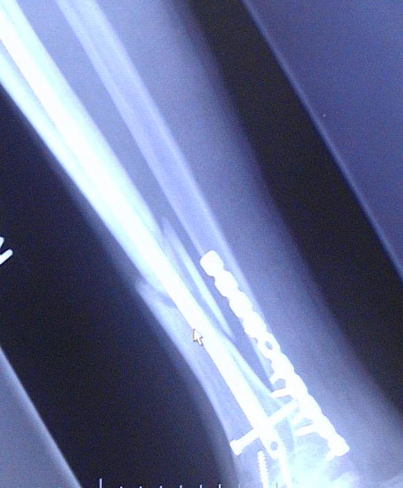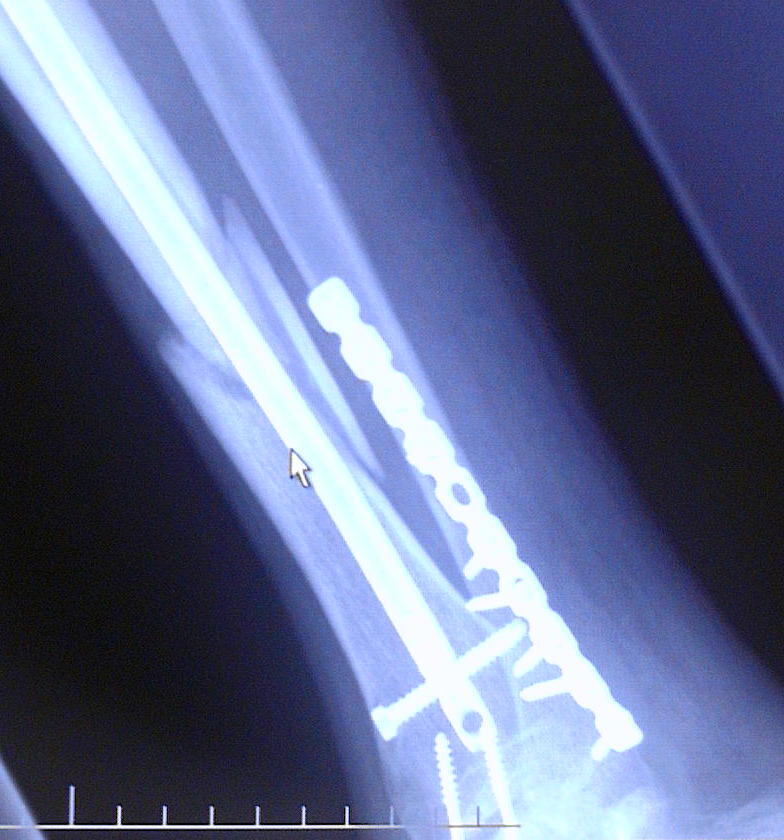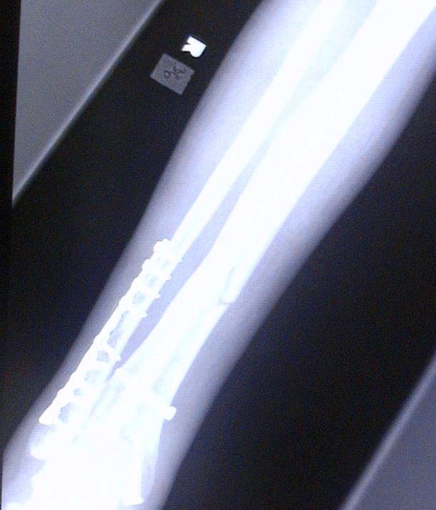 He just got hiz 3rd cast removed and found out that the bone is not progressing. He now has an walking cast on with a bone stimulator (to maximize circulation to that area) which he will most likely have for the next 6 months. As you can see in the X-Ray's he has a metal plate on the anterior side of hiz ankle where he broke it in 2 places. You can see where the tibula broke and how it is not healing. He has 13 screws and a titanium rod throughout the tibula. Price you pay for being a Stunter! "INSANE STUNTERZ"