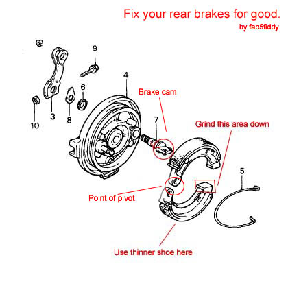 Ahhhh im trying to do it now but i dunno... So we grind down where it says "use thinner shoe here" or we grind down where it says "grind this area down"????? Where the brake cam touches or the actual shoe?????