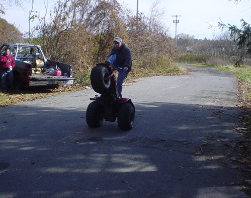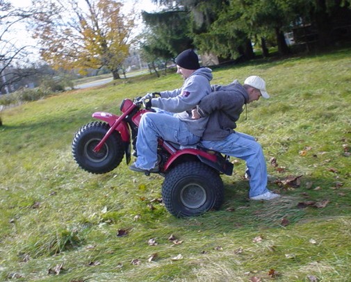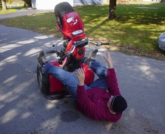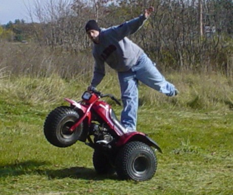 Man, you guys just back memories with those pictures. I used to get together with friends and ride ATCs in an apple orchard around here whenever the weather was crappy. It's so easy and fun. We were doing flamingos, highchairs, backwards wheelies, crazy *** combos, wheelying with a beer in one hand, all before anyone tried stepping it up on the street bikes. It's great practice. We had two ATC110s, two 350Xs, and a Blaster. I gotta get another one of those rides together!