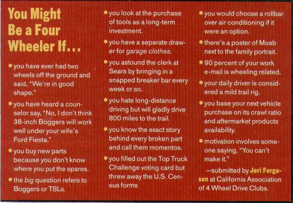 You might be a fourwheeler if.......