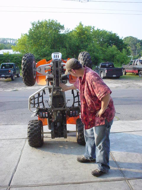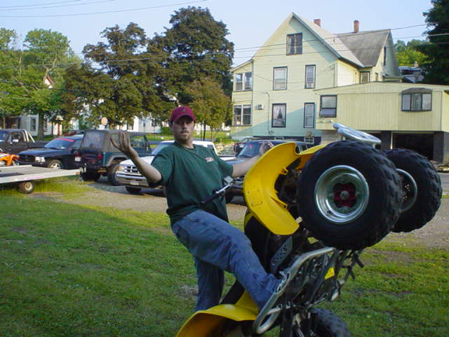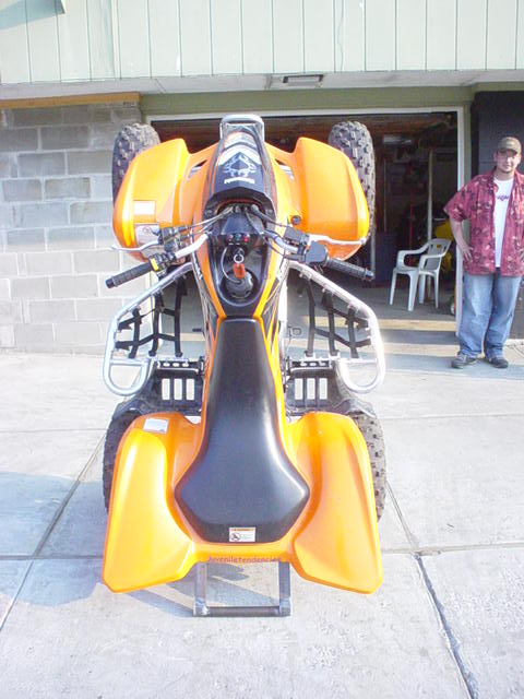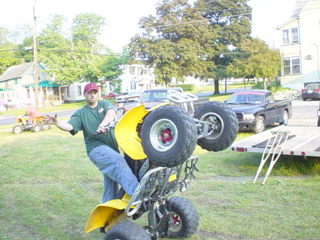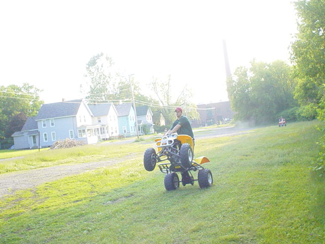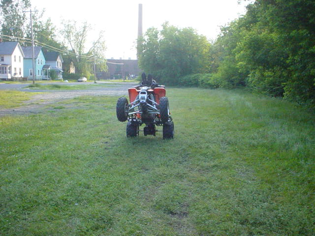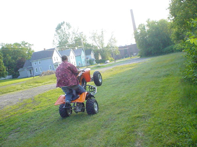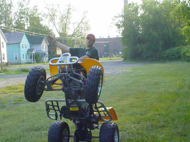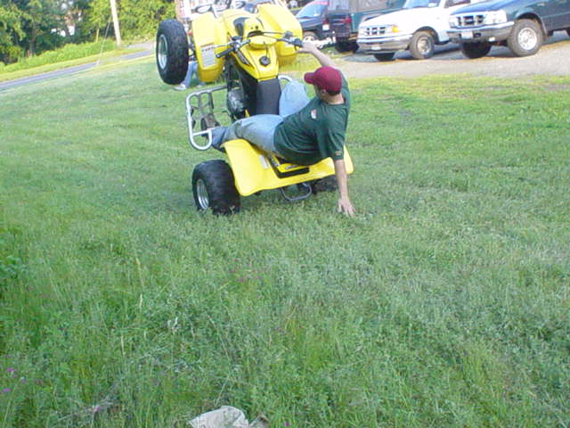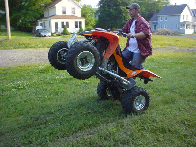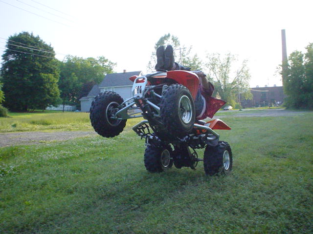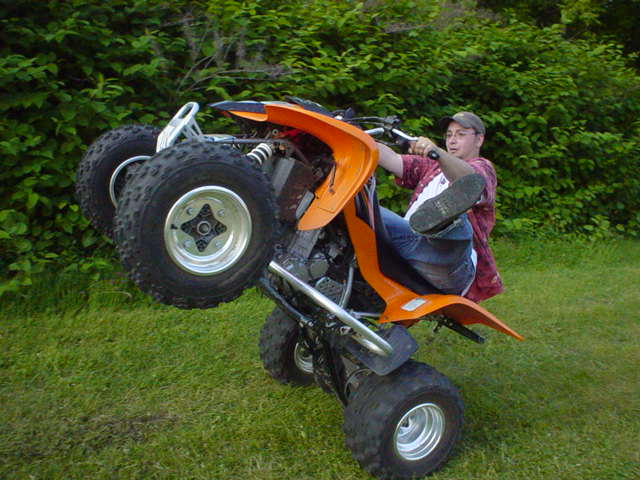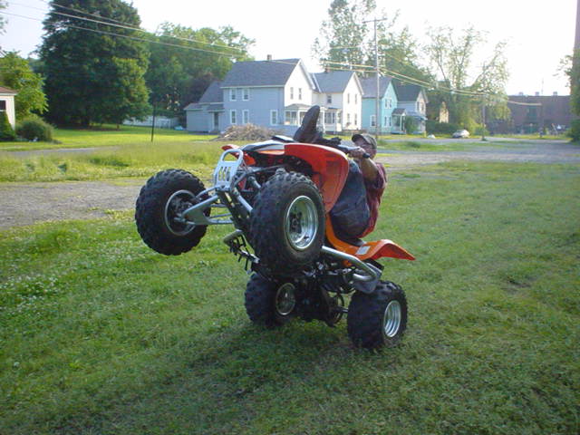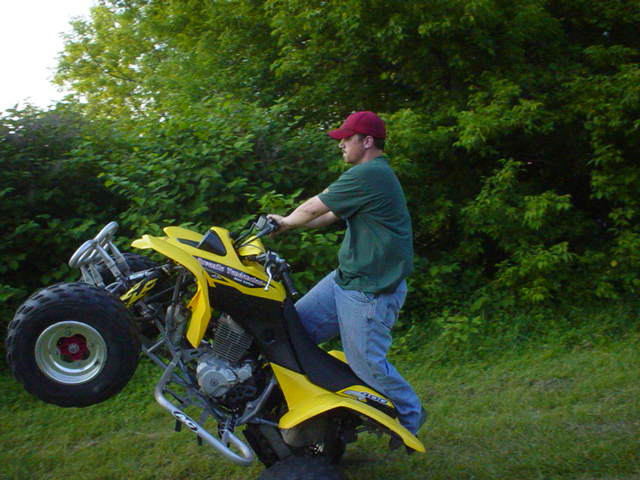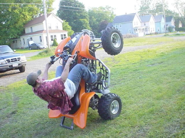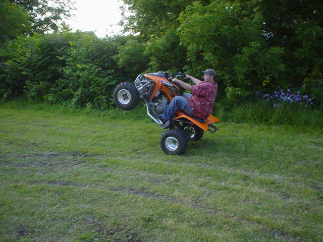 Dans 400 is a sweet quad. I like mine to, as you can tell by the pics i have just started trying to really stunt it. Last night i got brave and went from a sit down to one leg over the bar and back. I was getting kind of crazy on it.