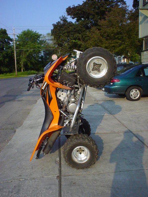 I rode my buddies new Z400 last weekend...my god, that is a no-hander machine! My EX chokes slightly when it's vertical and you aren't giving it gas....Where as the Z stays idleing high and doesn't skip a beat...made a big difference. If I hit the break on my EX in a no hander and drop it slightly below balance point it's over and it won't come back up, but the Z will. All it needs is a slip-on and that would be my choice for a stunt quad.