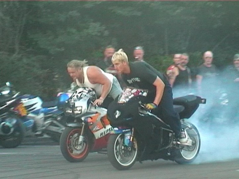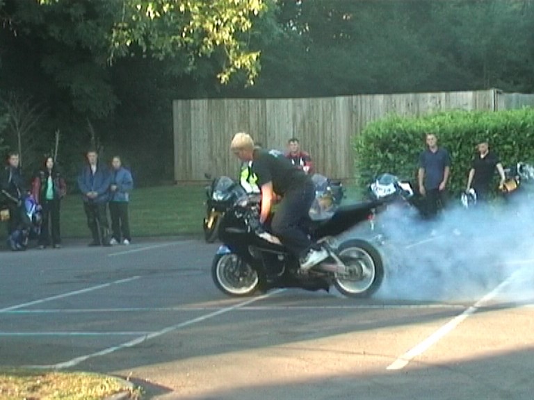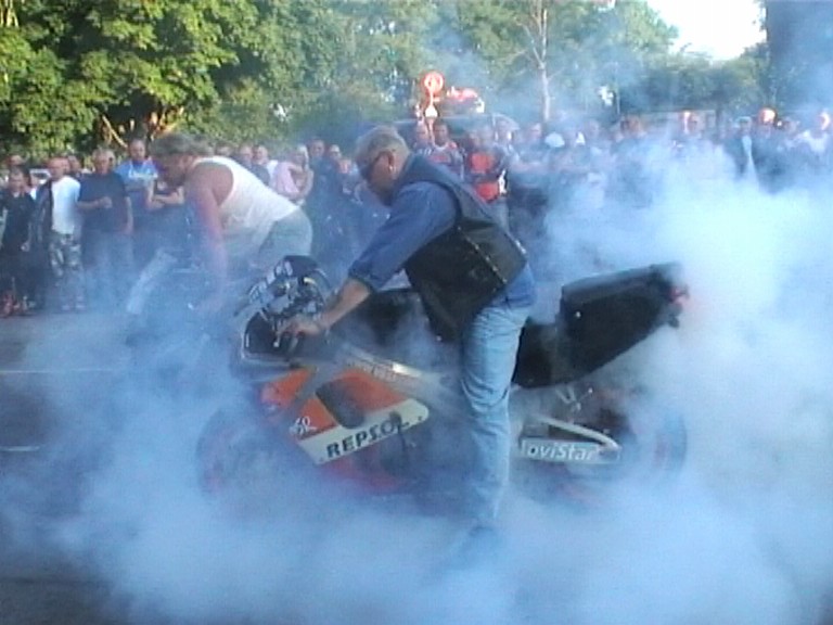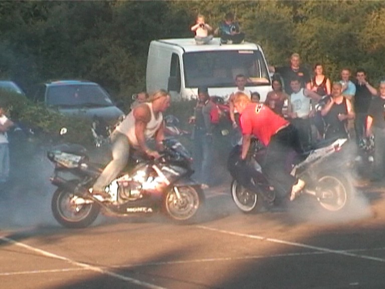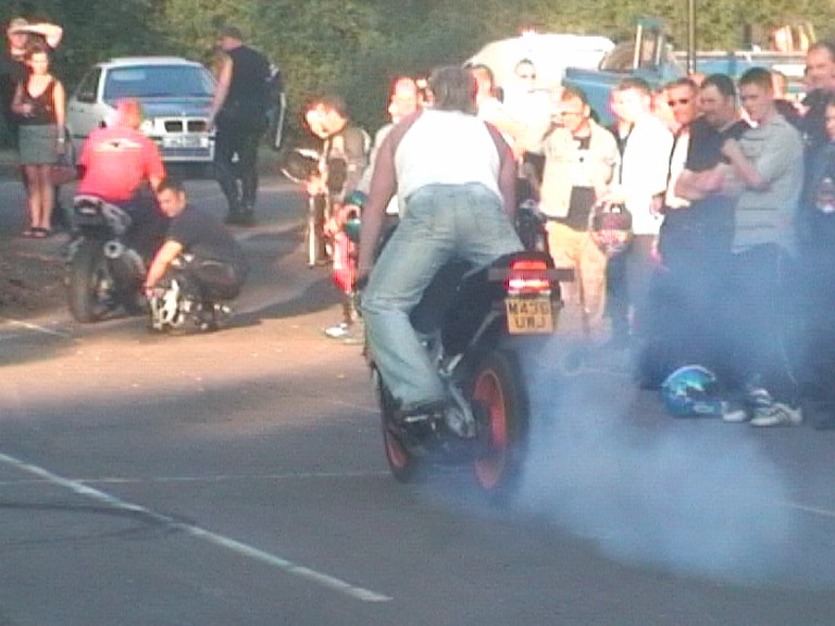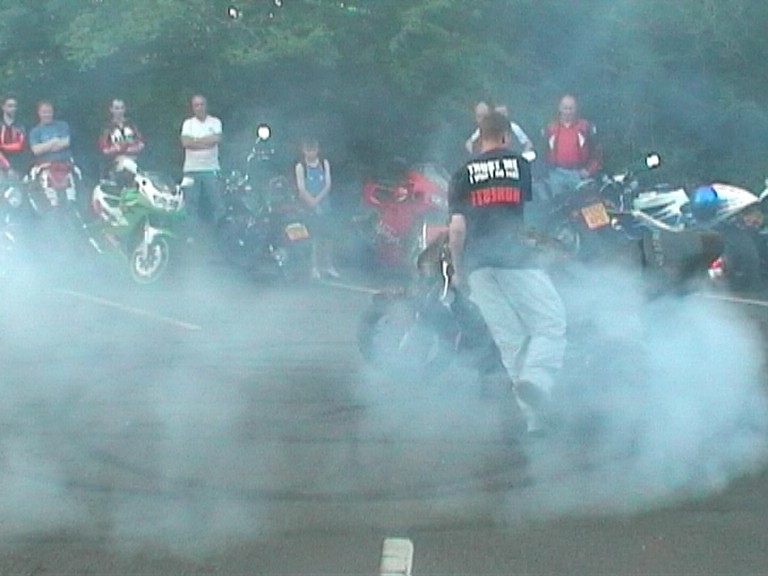 burn outs, skittchin in a circle, stand on the seat, chainsaws and stuff like that. Still a top night out for free