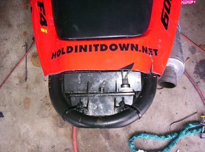 4 bolts on each side 2 in lower and 2 in upper brace and a piece of steel across the back to keep it from moving in while scraping. nice design but they need to be shorter all of the people i know that have them do not fit under the tail like everything else
