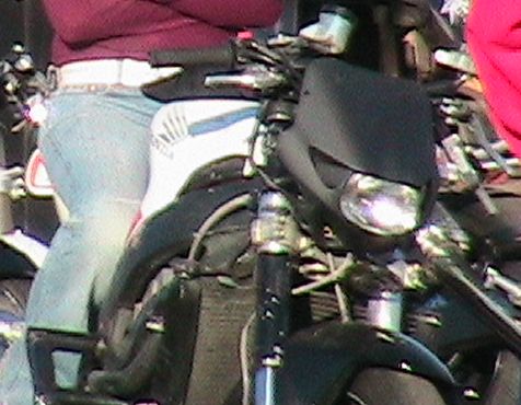 Here's a picture of the color of the other F4i. Notice the color of blue paint (rather unique) and the gray grips. Also, here's a picture of the front of the white F4i (the front streetfighter nose is painted flat black right now, single square light).