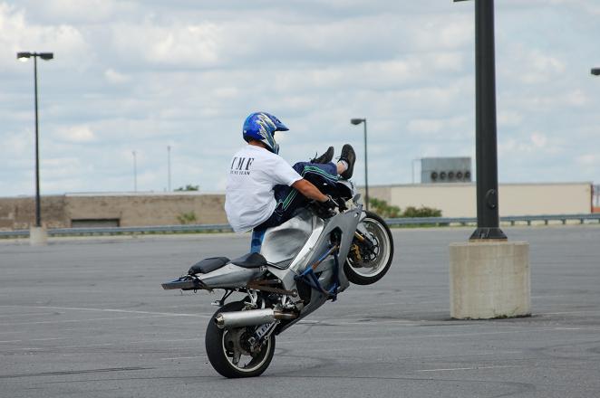 I've been riding sportbikes for a lot of years. I've enjoyed doing highway wheelies, but always wanted to get into the slow, parking lot stuff...so I bought an F4i (big suprise there huh) and started slow stuff. I have a cage on it, but since I am still learning, I keep 12 o'clockin it and then dropping it. The other day I dropped it on the left side and broke the rear set and left rear passenger peg. So now I can't do anything on it 'till I fix it. This could get expensive.