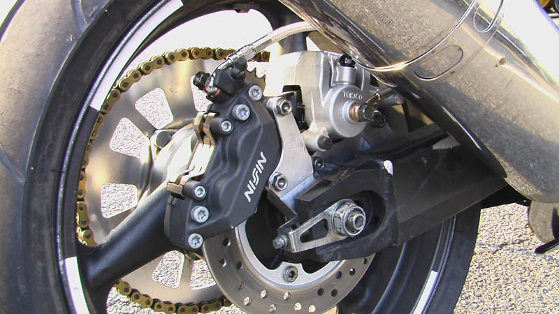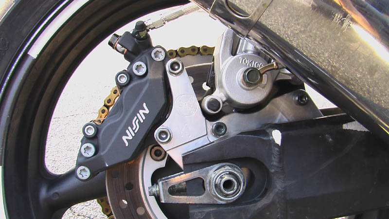 Just wonderin what was the reason he used a front 4 piston front caliper? A front caliper doesnt float becaue the rotor floats, so you now have one floating caliper on your rear disc and one that doesnt...I like the feel of a floating caliper better