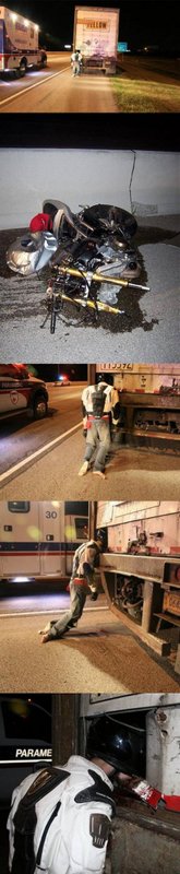 yes it is... i dont remember the whole story but i know that if you run into the back of a semi going fast enough to do that much damage you were most likely riding like a dumbass.. so its his own fault, but regaurdless, rip