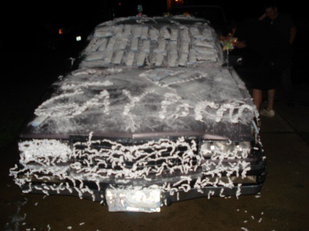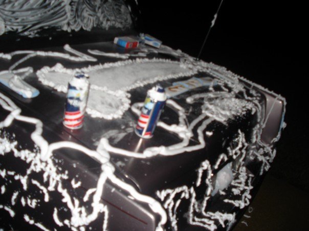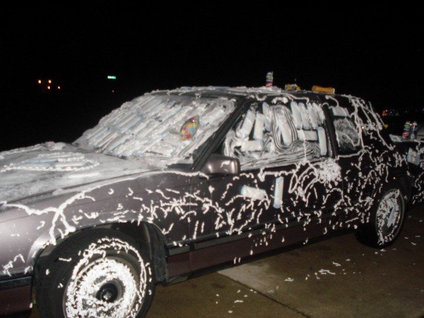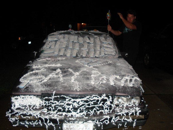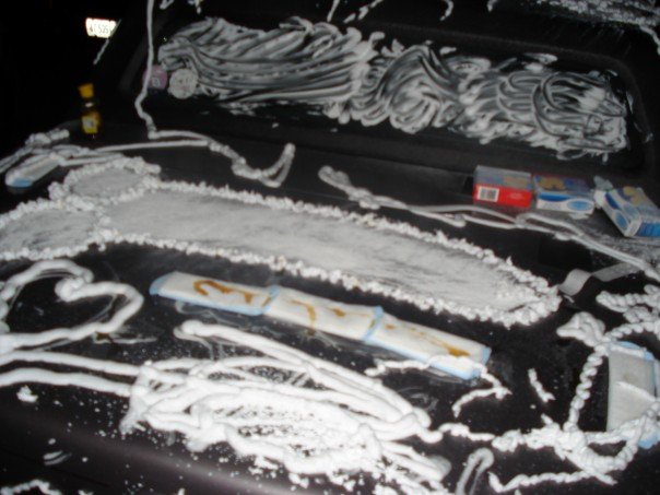 these last two were shaving cream, honey, baby powder, pads, and the other car we put 200 condoms and wrappers on it
