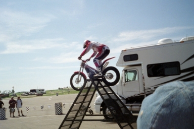When she gets older, she will be a good tandem partner too since she would have ben doing it so long. She has a freestyle bmx bike that she takes to the lot with her polini, knock-off pocket bike when she comes with me. Plus, she has moved up to basic stuff on the 400 motard with me now!! She's only 9! So I'm sure there will be more pics after this summer..... She's a daddy's girl!