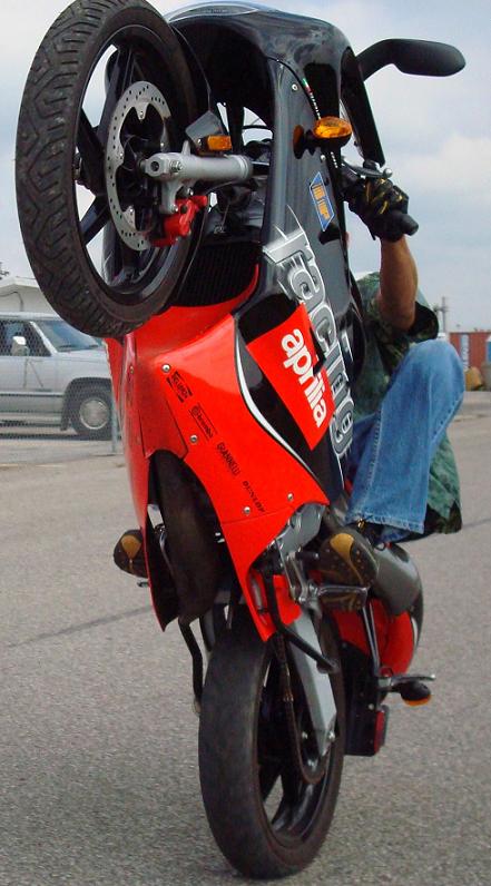 Other than that they wheelie great, wheels & tires are a little skinny & you will have to adjust your side to side balance. Wheelies are like this, sitdowns: sit back all the way, rev it all the way & dump the clutch with weight transfer, hard to get at first then easy. standups: left foot on peg, rev it most of the way, dump the clutch, comes right up. Now stoppies on the other hand are awesome! Just pauses at the end.