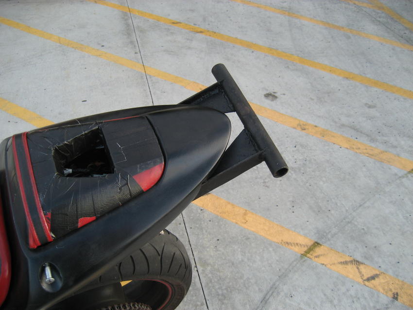 Its almost level with the tip of the tail. it might stick out alittle far, but i wanted to keep the rear fairing whole, i like the look better but if it doesnt work out ill have to cut it down