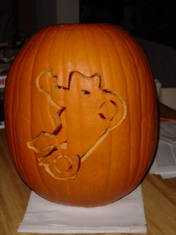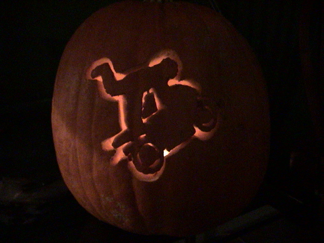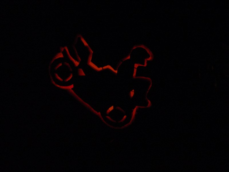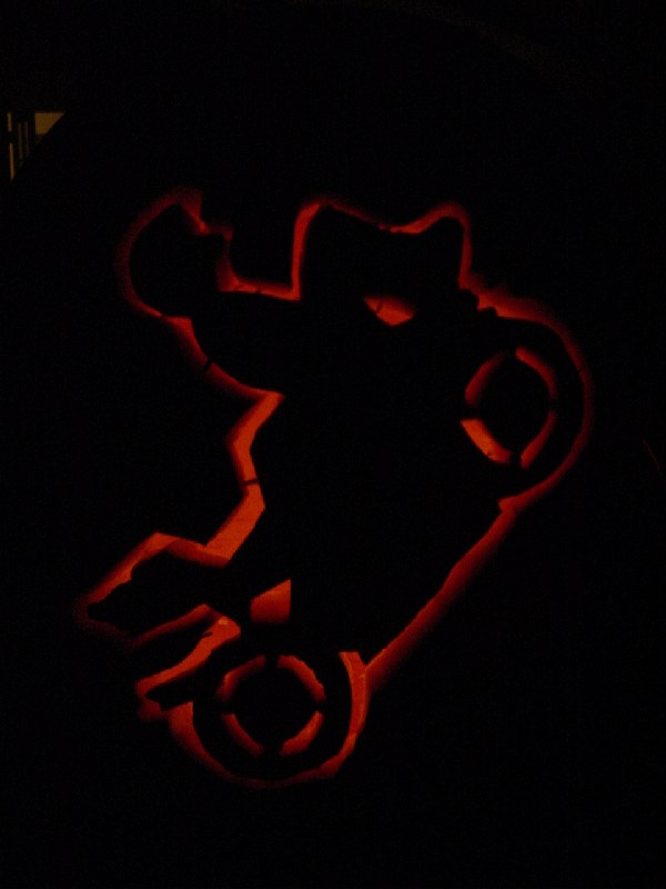 heres my pumpkin i made today, its the bike off the stuntlife.com stickers... heh, it can be a wheelie or a stoppie lol...