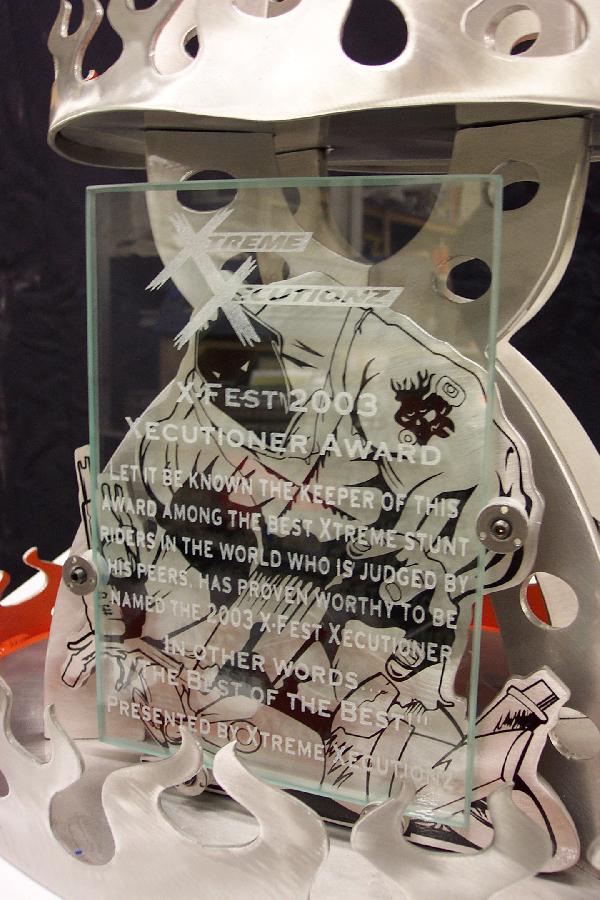 I had this pimp *** trophy sitting at my house for awhile then had to give it up to who ever won it at X fest. I'm not sure who did because I had to take someone to get stitches after flipping a high chair lol. Anyhow this thing was one of the sickest trophies I had seen yet and think maybe scott or kevin got it but hell if I remember. oh and I brought this up cause I just found this pic of it.