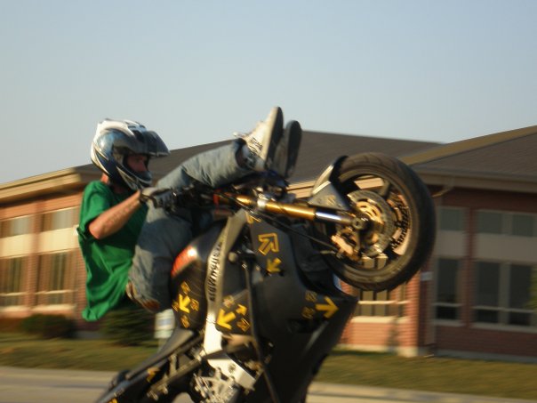lookin good man. I'm only a month in on seat time with the stunt bike myself.... sooo, I'm gonna save your pics and steal your tricks. ha! keep at it man.