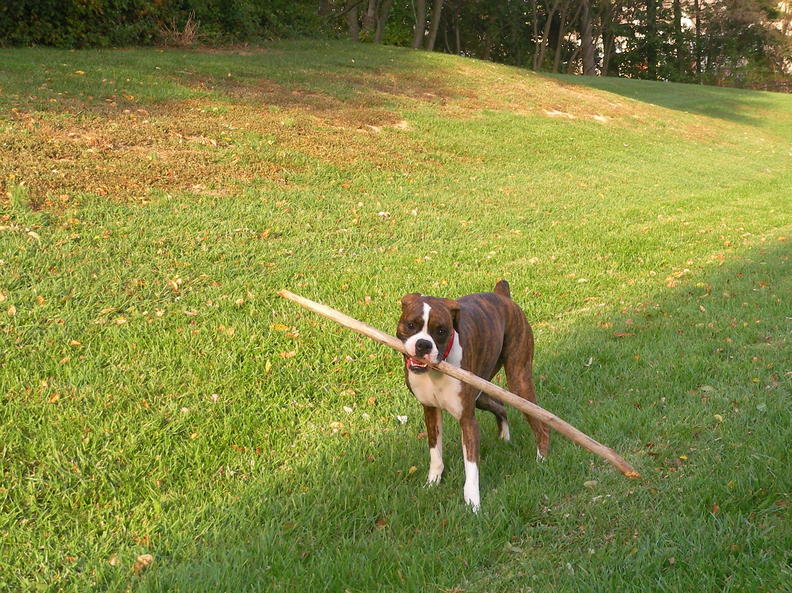 lol thats his favorite stick. keeps trying to bring that big ******* thing in the house too. sometimes he runs with hit holding the end and it hits the ground and almost pole vaults his *** lol