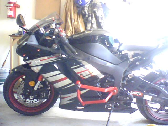 To the OP, you can get some cheap extended frame sliders like you see on my bike in front of the cage. They were like $40 on ebay and survived teaching one of my Ex's how to ride. Only thing that got messed up the times she dropped it was one time the mirror got a scuff, the derlin pucks got scuffed, and one other time it bent the mount bolt so I had to make a trip to lowes and spend ~$0.80 for the bolt. If you don't want to go that route racerailz would probably be the next best option. Then A-town because I doubt you want to cut your plastics up to mount the cage like you would a SI cage, since you want to keep it clean looking anyway. Powers you also wouldn't have to cut but I'm pretty sure it would drag.