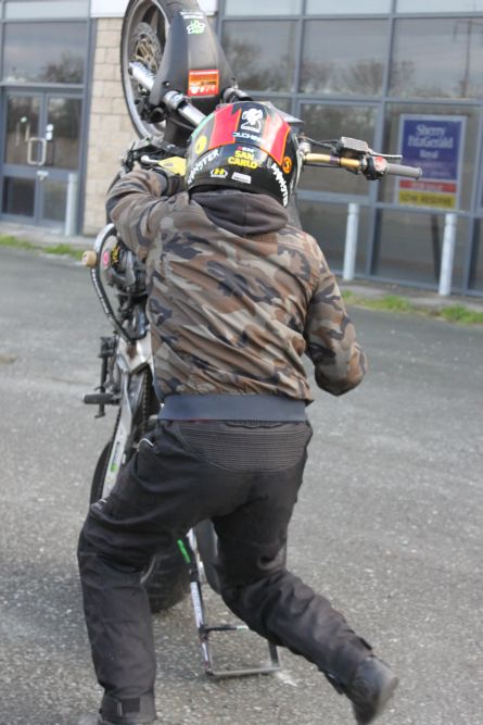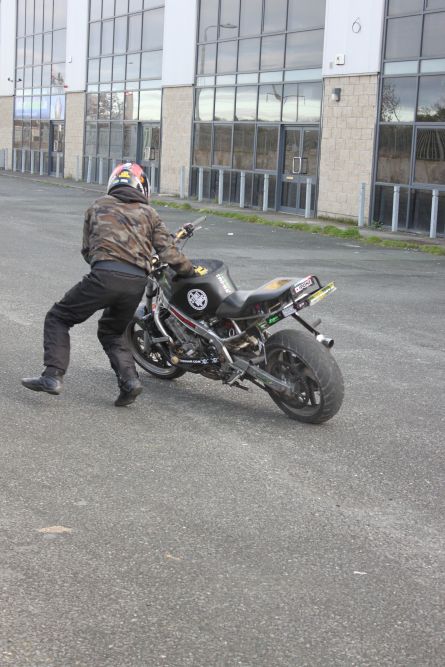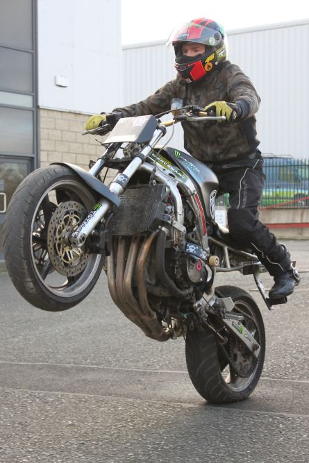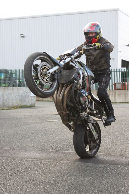 Learn to slip your clutch, not "dump it". You're ***** are working, (Looping out I have yet to do). So right as you give it gas, let go of the clutch it'll sound like yerrr rarrrrrr as the clutch slips to catch the engine. One action, as you open the throttle let go of the clutch. As far as balance point; stand on a basket ball and that's the core mussles you use. Do push ups on your bike. Build your wrists.