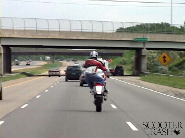 how about pullin a wheelie up....switchin lanes....and then dropping it @ 100mph