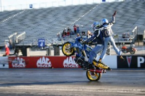 I just wanted to say thank you. I do this "tandem stuff" for the FANS......I love to get that little boy or girl to run up to me at the booth and be like I like it that stunt that you put your foot over to the side! While they try to imitate that stunt......that is the COOLEST part of stunting! To me anyways. I've stunted with Steve (FBI Boyz & Evasive Actions), Patrick Stephens (Patrick Stephens Freestyle.....but even back when he was SportBike Hype and POB), and Tony D (Tony D Freestyle). Each of these guys has a WAY DIFFERENT STYLE......but they are all great riderz. Not everyone has to like Tandem stuntz.....but even if it's not YOUR thing.....bashing it isn't going to STOP me from stunting! I think that sometimes my confidence in what I do is mistaken for my being cocky. Buy ANYONE that has taken the time to get to know me.....as more than a stunter......knows....I'm not cocky about what I do.....I just love what I do.